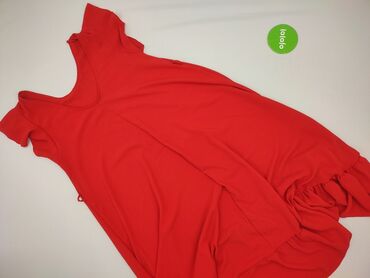 Czerwona sukienka damska z krótkim rękawem i okrągłym dekoltem, idealna na codzienne wyjścia. Sukienka charakteryzuje się luźnym fasonem w górnej części, z opuszczonymi ramionami, co zapewnia komfo...