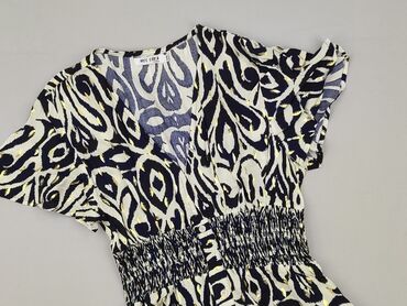 Sukienka damska EXHIBIT - Fason: rozkloszowana, z dopasowaną górą i falującym dołem - Zapięcie: rząd guzików z przodu na całej długości stanika - Rękaw: krótki - Dekolt: okrągły - Wzór: drobne, bi...