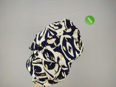 - Wzór: wyrazisty, etniczno-abstrakcyjny print w kolorach granat/ekri z drobnymi złotymi akcentami