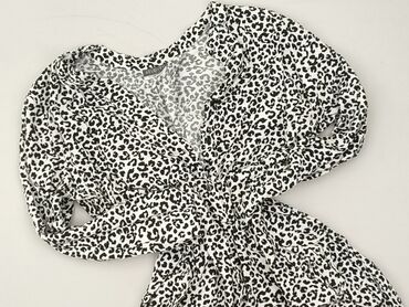 Bluzka kopertowa w panterkę - Krój: krótka bluzka typu wrap z wiązaniem z przodu (długie paski do przewiązania w talii) - Rękawy: długie, lekko bufiaste, zakończone gumką - Dekolt: kopertowy V - W...