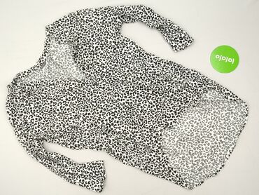 Bluzka damska z długim rękawem – wzór w panterę z dużym nadrukiem lamparta - Fason: prosta bluzka z okrągłym dekoltem, długi rękaw - Wzór: miks cętek i plam w odcieniach beżu, brązu i czerni; na p...