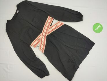 Czarna sukienka mini z długim rękawem - Fason: lekko rozkloszowany dół, elastyczna talia podkreślająca sylwetkę - Dekolt: okrągły z rozcięciem i wiązaniem z przodu - Rękawy: długie, bufiaste z wst...