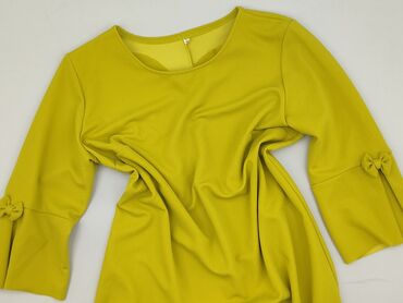 Sukienka dzianinowa 2‑kolorowa - Fason: prosta, z dłuższą częścią z tyłu; rękawy 3/4 - Kolor: pastelowa żółć (góra/przód) + jasny melanż szary (dół/tył) - Dekolt: okrągły - Zapięcie: krótki zamek ...