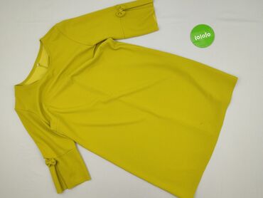 Sukienka damska w kolorze musztardowym, idealna na wiele okazji. Posiada krótkie rękawy i okrągły dekolt, a z tyłu zapinana jest na zamek błyskawiczny. Materiał to mieszanka poliestru, wiskozy i el...