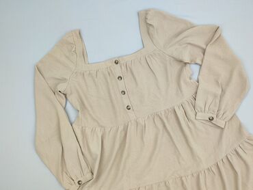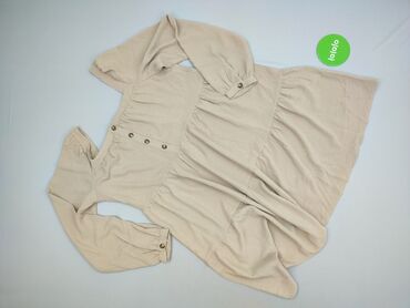Sukienka damska Sinsay - Rozmiar: XL (z metki) - Kolor: beżowy/taupe - Fason: prosta góra z odcięciem i marszczoną, falbanową dolną częścią - Rękaw: 3/4 - Dekolt: okrągły - Długość: mini/przed kol...