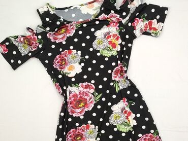 Sukienka damska w groszki, czerwono-biała, rozmiar XS. - Fason: rozkloszowana, długość mini. - Dekolt: kwadratowy/serduszkowy z elastyczną gumką; można nosić klasycznie lub lekko opuszczoną na ram...
