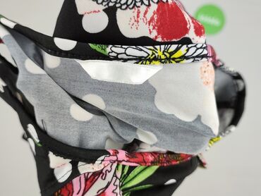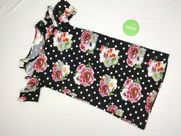 Sukienka damska midi w kwiaty i grochy - Kolor bazowy: czarny, białe kropki - Wzór: duże, kolorowe kwiaty (róże/piwonie) na całej powierzchni - Krój: prosty, długość za kolano (midi) - Dekolt: okr...