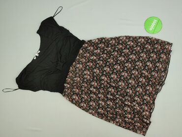 - Kolor: góra czarna; spódnica czarna w drobny, różowo‑brzoskwiniowy i biały kwiatowy print