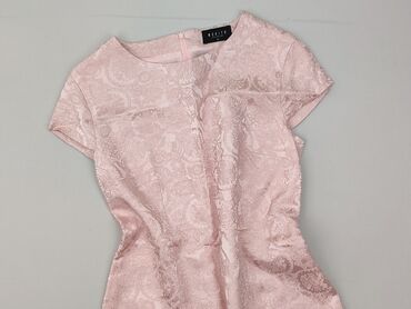 Sukienka damska MOHITO BASIC, rozmiar M. - Kolor: pudrowy róż - Krój: dopasowana góra, od talii rozkloszowany dół - Dekolt: w kształcie serca z delikatnym wycięciem - Rękawy: krótkie z falbanką - ...