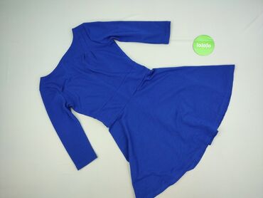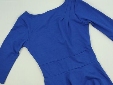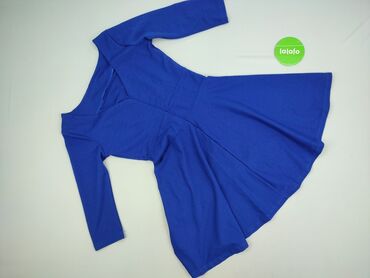 Sukienka damska, kobaltowa, z ażurowym wzorem - Krój: dopasowana góra z krótkim rękawem, lekko rozkloszowany dół - Dekolt: okrągły - Zapięcie: kryty zamek z tyłu - Materiał: elastyczna dzianina z ...