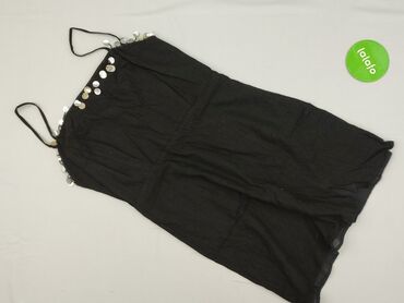 Czarna sukienka mini na ramiączkach – Sinsay, rozmiar S - Fason: dopasowana mini z cienkimi, regulowanymi ramiączkami. - Dekolt ozdobiony rzędem połyskujących blaszek/monetek naszytych na krótkich...