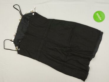 Sukienka Sinsay, rozmiar M - Krój: dopasowana, na cienkich ramiączkach spaghetti - Długość: mini/za kolano (w zależności od wzrostu) - Materiał: elastyczna tkanina z podszewką; całość pokryta czarn...
