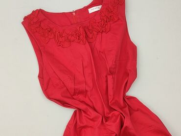 Sukienka damska Orsay – klasyczna, czerwona - Fason: ołówkowy, bez rękawów - Długość: przed kolano (mini/midi w zależności od wzrostu) - Dekolt: łódka z krótką zakładką z przodu - Zapięcie: ukryty...