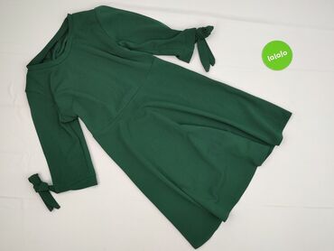 Sukienka damska, zielona, z długim rękawem. - Fason: prosta, lekko trapezowa, z dekoracyjną zakładką/zaszewką z przodu, długość mini/za kolano (w zależności od wzrostu). - Dekolt: okrągły. - Zap...