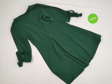 Sukienka damska w kolorze butelkowej zieleni. - Fason: rozkloszowana, długość mini/przed kolano - Góra z dekoltem w kształcie litery V i długimi rękawami z elastycznymi mankietami - W talii wszyta...