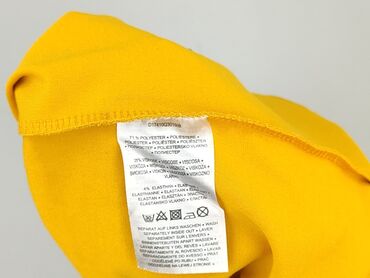 Sukienka damska z dzianiny, pastelowy żółty kolor. - Fason: prosta, lekko rozszerzana ku dołowi, długość mini/za kolano (w zależności od wzrostu). - Rękawy: długie. - Dekolt: polo z listwą guzik...