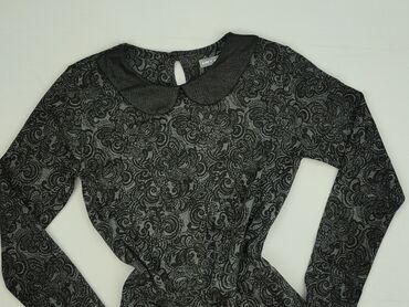 Sukienka GREY WOLF – rozmiar M - Fason: ołówkowy, dopasowany, długość midi - Rękaw: 3/4 - Dekolt: łódka - Kolor/pattern: czarne tło z geometrycznym, jasnym wzorem w okręgi i ósemki na całej powier...