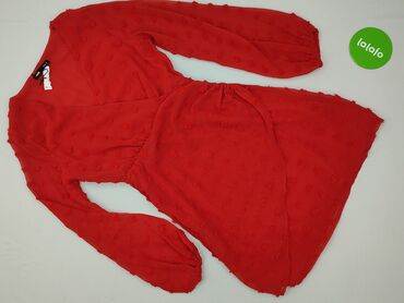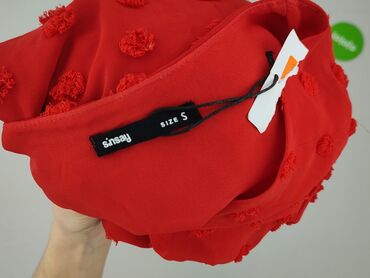 Sukienka Sinsay – rozmiar S - Kolor: intensywna czerwień - Wzór: białe drobne kwiatki na delikatnie kropkowanym tle - Fason: kobiecy, z kopertowym dekoltem w kształcie litery V - Rękaw: krótki, le...