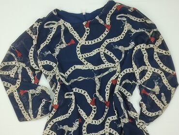 Sukienka damska, granatowa, rozmiar XL. - Fason: luźny, warstwowy, z dłuższym, półprzezroczystym dołem - Rękawy: do łokcia, z lekkiej, półtransparentnej tkaniny - Dekolt: okrągły - Materiał: połąc...