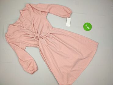 Sukienka damska, Made in Italy - Krój: prosta, lekko oversize; długość przed kolano - Rękawy: do łokcia - Dekolt: łódka z dwoma ozdobnymi złotymi oczkami/nitami przy ramieniu - Kolor: pudrowy róż ...