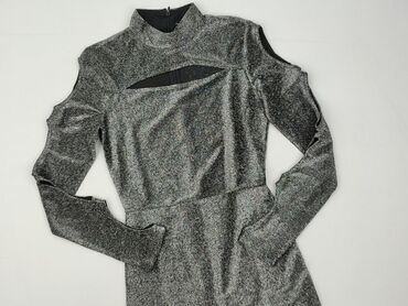 Srebrna sukienka koszulowa H&M Divided - Rozmiar z metki: S (EUR S / US S / CA P / MX CH / CN 165/88A) - Fason: dopasowany, długość mini; zapinana na rząd guzików na całej długości - Kołnierzyk st...