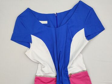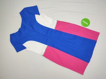 Sukienka damska bez rękawów, ołówkowa, w blokach kolorów. - Kolory: intensywna zieleń, kobaltowy niebieski oraz beżowy pasek przy dole. - Fason: dopasowany, długość do kolan, okrągły dekolt. - Zapi...