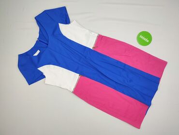 Sukienka damska, rozmiar L. - Fason: ołówkowy, długość midi (przed kolano), z krótkim rękawem - Kolorystyka: beżowo‑czarna, z wyszczuplającymi panelami po bokach - Przód: efektowna, duża aplikacja...