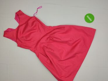 Sukienka damska F&F - Krój: rozkloszowana, bez rękawów, z dekoltem V - Kolor: pudrowy róż z szeroką, kontrastową czarną lamówką u dołu - Zapięcie: kryty zamek na plecach - Materiał (metka): 64% po...