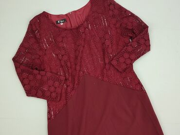 Sukienka koronkowa bordo – midi - Kolor: głęboki bordowy - Fason: dopasowana, długość midi - Rękaw: 3/4 - Dekolt: zaokrąglony - Tkanina zewnętrzna: ażurowa koronka o dekoracyjnym, geometrycznym wz...Stan: