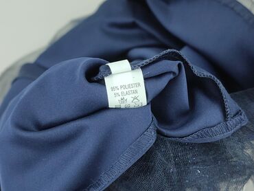 Granatowa sukienka damska z siateczki - Krój: rozkloszowany dół, dopasowana góra - Dekolt i ramiona z transparentnej siateczki, z przodu subtelne wycięcie w kształcie łezki - Tył zapinany na mały ...