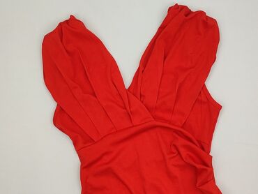 Czerwona sukienka z koronką, rozmiar S - Krój: ołówkowy, długość za kolano - Rękawy: długie - Dekolt: półokrągły z efektowną czarną koronką na ramionach i górnej części przodu/tyłu - Zapięcie: dłu...