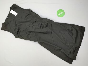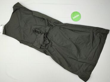 Sukienka damska bez rękawów w kolorze oliwkowej zieleni. - Krój: asymetryczny, długość midi z lekko dłuższym tyłem - Dekolt: okrągły - Ramiączka: szerokie - Detal: wiązanie z boku z efektownym mar...