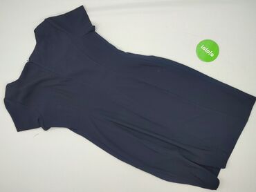 Sukienka MOON – granatowa, damska, rozmiar L - Krój: klasyczna, prosta linia ołówkowa, długość za kolano - Rękawy: 3/4 z ozdobnymi perełkami przy mankietach - Dekolt: okrągły - Zapięcie: kryty zam...