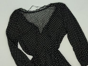 Czarna bluzka z długim rękawem i półprzezroczystymi wstawkami - Materiał lekki, cienki, o miękkim chwycie; na ramionach oraz dekolcie półtransparentna siateczka w grochy. - Dekolt w kształcie lite...