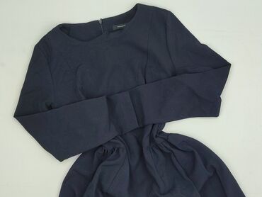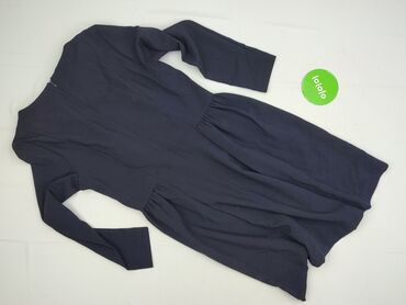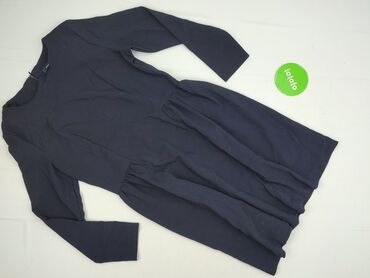 Dodatkowe informacje: sukienka dobrze układa się w talii, marszczenia dodają objętości dołu, tworząc kobiecą sylwetkę. Neutralny granat łatwo łączy się z marynarką i czółenkami.