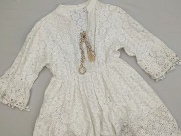 Biała sukienka boho bez rękawów - Materiał: lekka, zwiewna tkanina (dół i część spódnicy półtransparentna), góra z ażurową koronką - Kolor: czysta biel - Krój: luźny, lekko rozszerzany, sięga nad ...