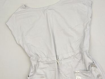 Biała sukienka/tunika z krótkim rękawem - Fason: odcięcie w talii z marszczonym, lekko rozkloszowanym dołem; dół zaokrąglony - Dekolt: okrągły - Rękaw: krótki - Materiał: 100% bawełna (metka: My B...Stan: