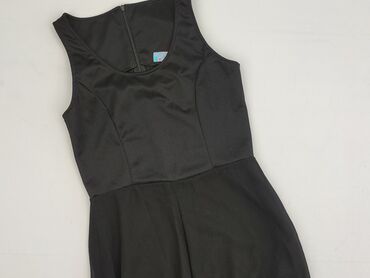 Sukienka damska, klasyczna czarna „mała czarna”. - Fason: dopasowana w talii z delikatnie rozkloszowanym dołem - Długość: przed kolano (mini/midi w zależności od wzrostu) - Rękaw: krótki - Dekolt:...
