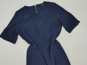 Sukienka Esmara - Kolor: granatowy - Krój: prosty, długość do kolan/za kolano, krótki rękaw, okrągły dekolt - Zapięcie: zamek błyskawiczny z tyłu - Kieszenie: dwie naszywane z przodu - Rozmiar z m...