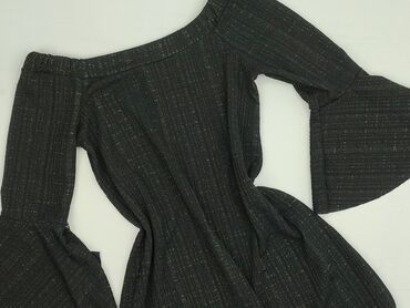 Sukienka damska wieczorowa, czarna z delikatnym, mieniącym się połyskiem (brokatowa nitka). - Fason: dopasowany, ołówkowy, długość midi - Dekolt: hiszpański/off-shoulder z efektowną falbaną wokół...