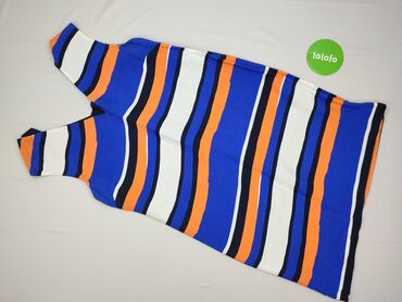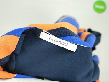 Sukienka Promod – dzianinowa, ołówkowa, z krótkim rękawem. - Fason: prosta/ołówkowa, sięgająca okolicy kolan, lekko dopasowana w talii. - Wzór: drobna pepitka w kolorach czerni, bieli i niebieskie...