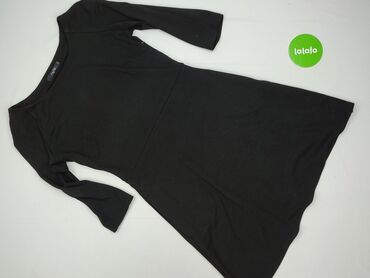 Sukienka damska CARRY formal, rozmiar M. - Kolor: czarny - Fason: prosta, z krótkim rękawem, okrągły dekolt - Góra z gładkiego, lekko połyskującego materiału - Dół oraz przód od linii biustu zdobi...