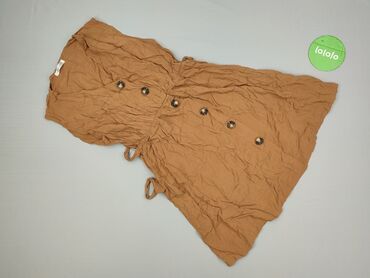 Sukienka damska bez rękawów w kolorze karmelowym - Krój: luźny, rozszerzany ku dołowi, długość przed kolano - Dekolt: okrągły z falbanką przy stójce - Rękawki: krótkie, z falbankami - Góra sukienk...Stan: