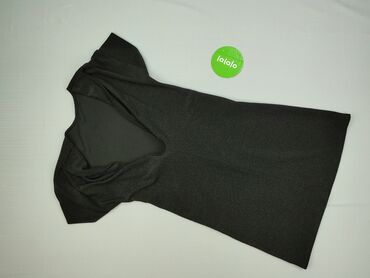 Czarna sukienka damska, rozmiar L - Fason: prosta, lekko odcinana w talii z marszczeniem, długość mini/za kolano (w zależności od wzrostu) - Dekolt: V z subtelną falbanką przy wykończeniu - Rękawy...