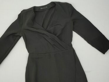 Sukienka damska Mohito - Kolor: czarny - Rozmiar z metki: 34 - Fason: kopertowa góra z dekoltem V, dopasowana talia, rozkloszowany dół - Rękawy: długie - Zapięcie: kryty suwak z tyłu - Detale: ozd...Stan: