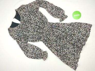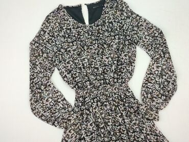 Sukienka damska MOHITO Collection - Rozmiar: 36 - Fason: dopasowana w talii, delikatnie rozkloszowany dół - Rękawy: długie - Dekolt: okrągły/podszyty pod szyję - Wzór: gęsty kwiatowy print na ciem...