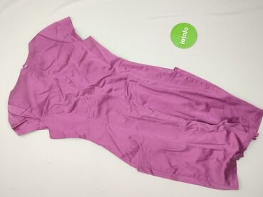 Sukienka damska w kolorze fuksji/magenta - Krój: ołówkowy, długość za kolano, z krótkim rękawem - Dekolt: półokrągły z drobnymi zakładkami z przodu - Zapięcie: zamek błyskawiczny z tyłu - Materiał...