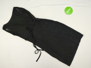 Sukienka damska bez rękawów, czarna - Krój: dopasowany z ozdobnymi marszczeniami i wiązaniem w pasie, dekolt w kształcie litery V z przodu, okrągły z tyłu - Długość: midi (na metce średnia długość...Stan: