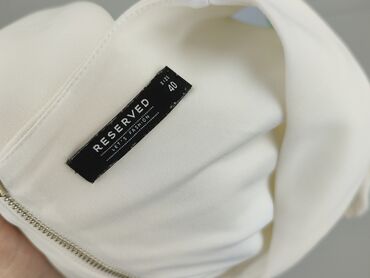 Sukienka damska Reserved - Model: prosta, dopasowana tubka z krótkim rękawkiem - Rozmiar z metki: L - Kolor bazowy: biały - Wzór: przód pokryty intensywnym, wielobarwnym nadrukiem kwiatów i liści;...
