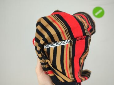 - Wzór: poziome pasy w odcieniach karmelu, czerni i intensywnej czerwieni